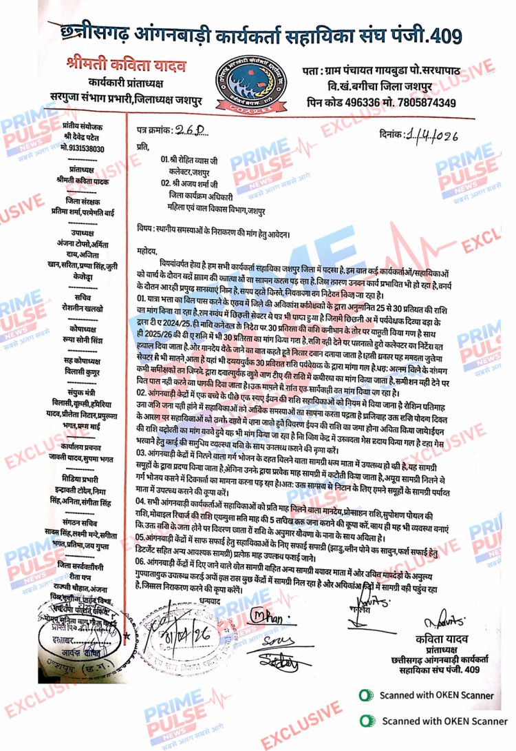 25 फरवरी 2026 को कलेक्टर रोहित व्यास ने परामर्शदात्री की बैठक में कार्यकर्ताओं द्वारा उठाए गए यात्राभत्ता में पैसे की मांग के शिकायत पर कहा था कि कोई भी कार्यकर्ता सहायिका से इस प्रकार की पैसे की मांग करना गलत है जो भी मांग करता है यदि उसके विरुद्ध लिखित शिकायत सामने आता है तो संबंधित के विरुद्ध कठोर कार्रवाई किया जाएगा,उक्त बैठक के बाद जिले भर में कार्यकर्ताओं सहायिकाओं में न्याय के लिए उम्मीद की किरण जागी,सभी ने साहस का परिचय देते हुवे जशपुर कलेक्टर पर भरोसा जता गलत के विरुद्ध आवाज उठाया और संघ के माध्यम से लिखित शिकायत कलेक्टर एवं डीपीओ को किया है।उक्त शिकायत के 24 घंटे के भीतर ही शिकायतकर्ताओं को डीपीओ ने बिना जांच के नोटिस जारी कर दिया है।जिसका जवाब सभी शिकायतकर्ताओं ने समय रहते प्रस्तुत भी किया।लेकिन आज पर्यंत तक मामले में कोई कार्रवाई नहीं की गई है न हे दोषियों के विरुद्ध किसी प्रकार का जांच किया गया बल्कि रोजाना किसी न किसी माध्यम से शिकायतकर्ताओं को शिकायत वापस लेने का दबाव बनाया जा रहा है।एक तरफ कलेक्टर के भरोसे पर कार्यकर्ताओं ने हिम्मत दिखाई,वहीं दूसरे तरफ विभाग के आला अधिकारी अब कार्यकर्ताओं की उसी हिम्मत को कुचलने में लगे हैं।