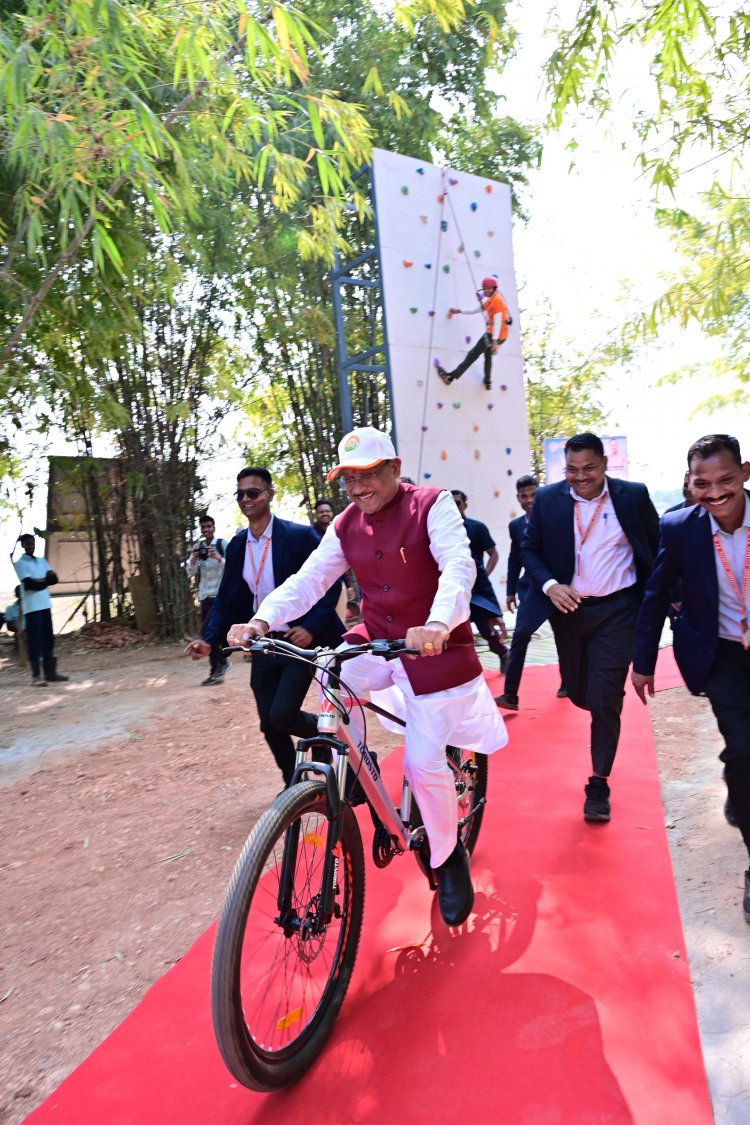 जशपुरनगर। प्रदेश के मुख्यमंत्री श्री विष्णुदेव साय आज एक अलग ही उत्साहपूर्ण और ऊर्जावान अंदाज़ में नज़र आए। जिले के प्रसिद्ध पर्यटन स्थल मयाली नेचर कैंप के प्रवास के दौरान मुख्यमंत्री ने न केवल प्राकृतिक सौंदर्य का लुत्फ उठाया, बल्कि विभिन्न साहसिक खेल (Adventure Sports) गतिविधियों में हिस्सा लेकर पर्यटन और स्वास्थ्य का संदेश भी दिया।