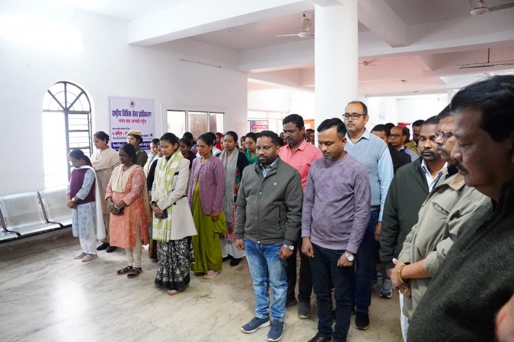 मौन धारण: अधिकारियों-कर्मचारियों ने 2 मिनट का मौन रख दी श्रद्धांजलि।