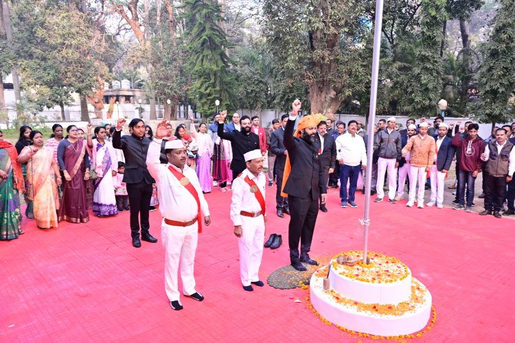 जशपुरनगर | 26 जनवरी 2026 77वें गणतंत्र दिवस के गरिमामय अवसर पर कलेक्टर श्री रोहित व्यास ने कलेक्टोरेट परिसर में राष्ट्रीय ध्वज फहराया। इस दौरान कलेक्टोरेट के अधिकारियों और कर्मचारियों ने सामूहिक रूप से राष्ट्रगान गाकर देश की एकता, अखंडता और संविधान के प्रति अपनी अटूट निष्ठा व्यक्त की।